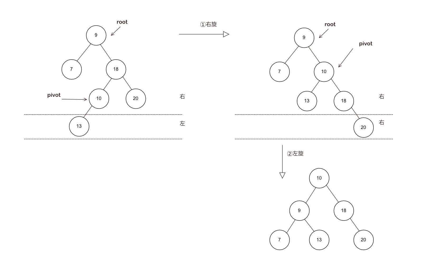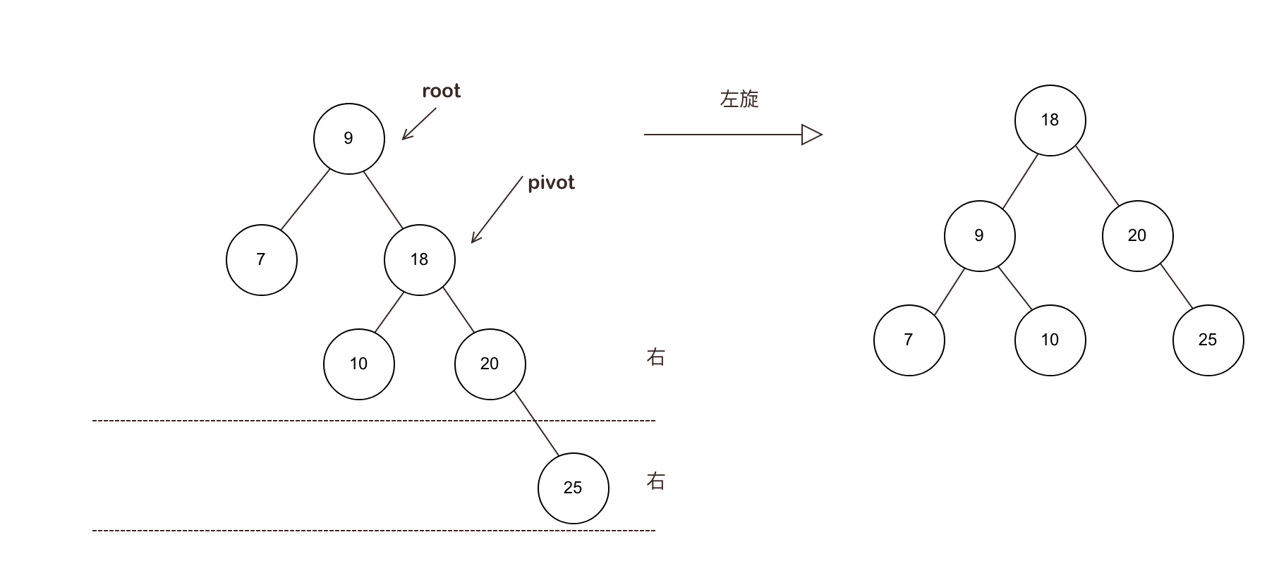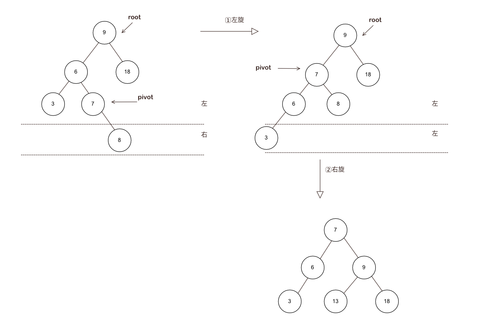 - 增加和删除可能需要通过一次或多次树旋转来重新平衡这个树
