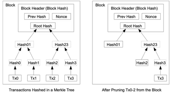 使用merkle树:只需计算路线上的哈希,时空复杂度都是$O(logn)$;代价是总存储空间变大(需要存哈希树),但是依旧是$O(n)$