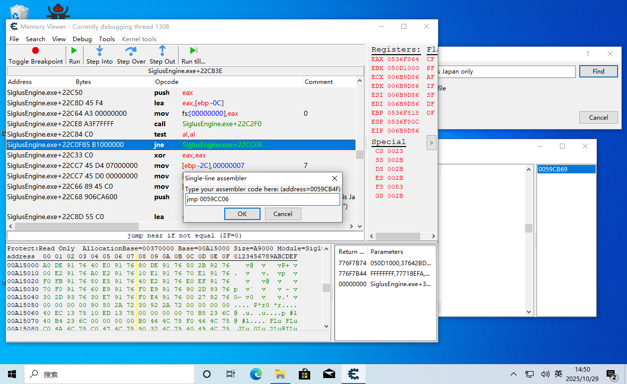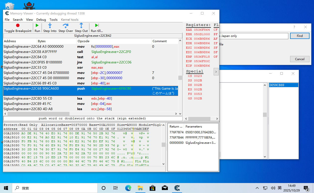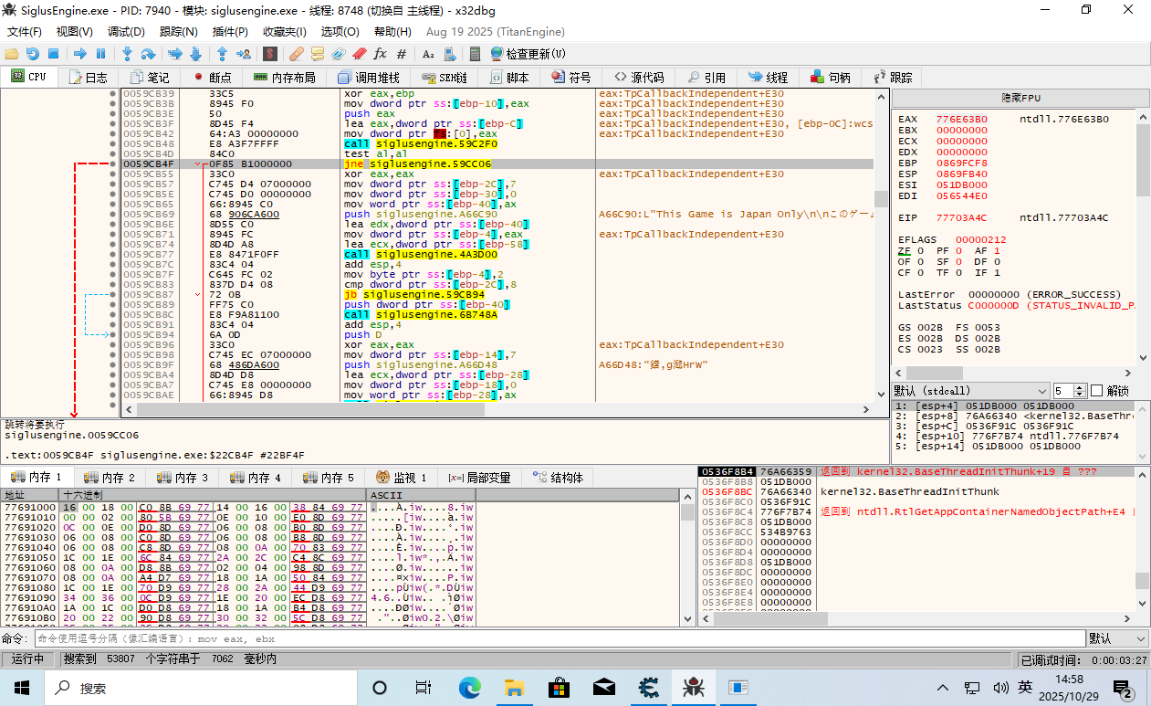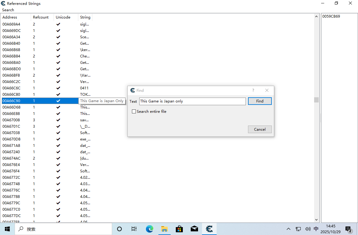 得到对应的地址0059CB69,双击定位到相应的位置