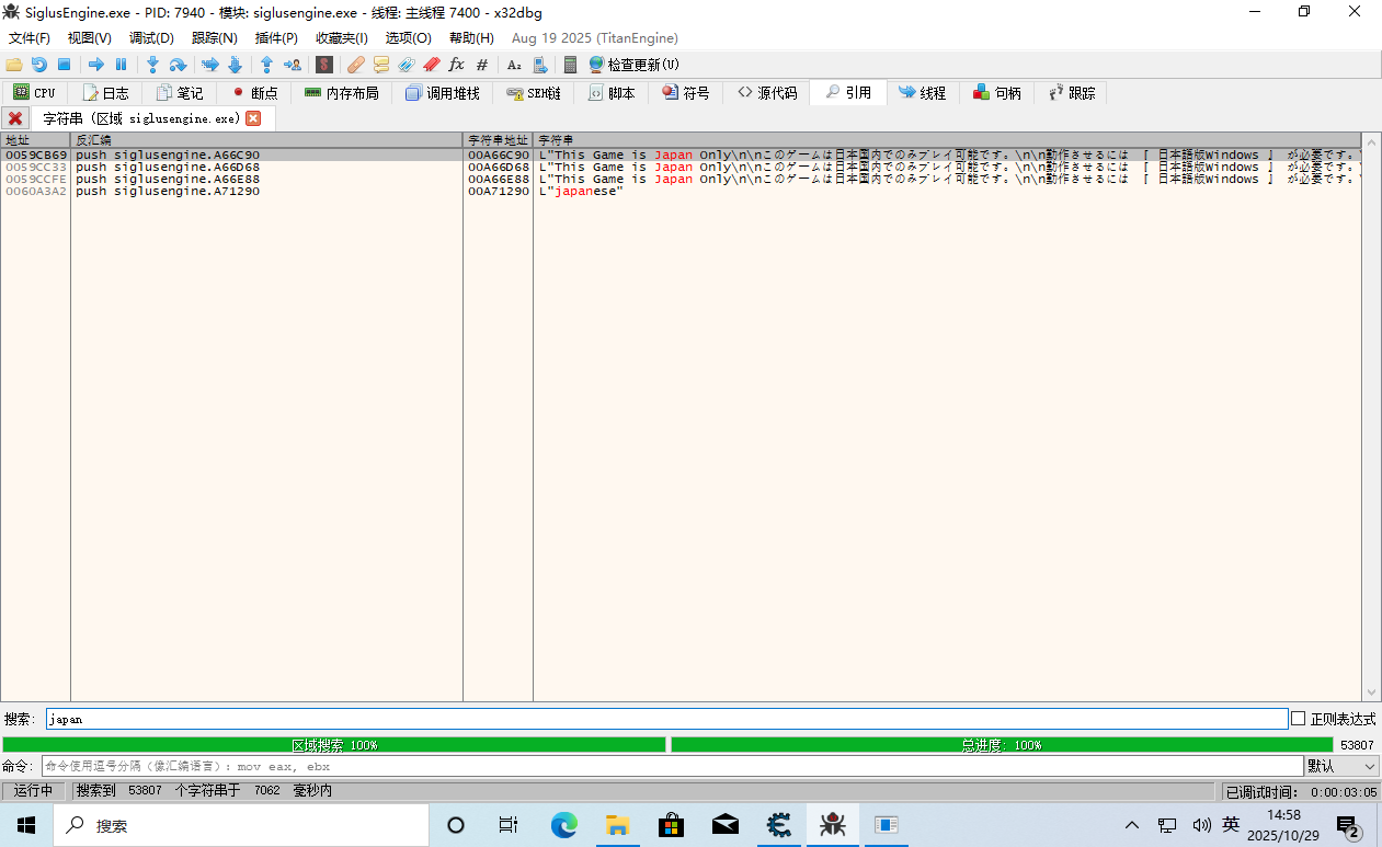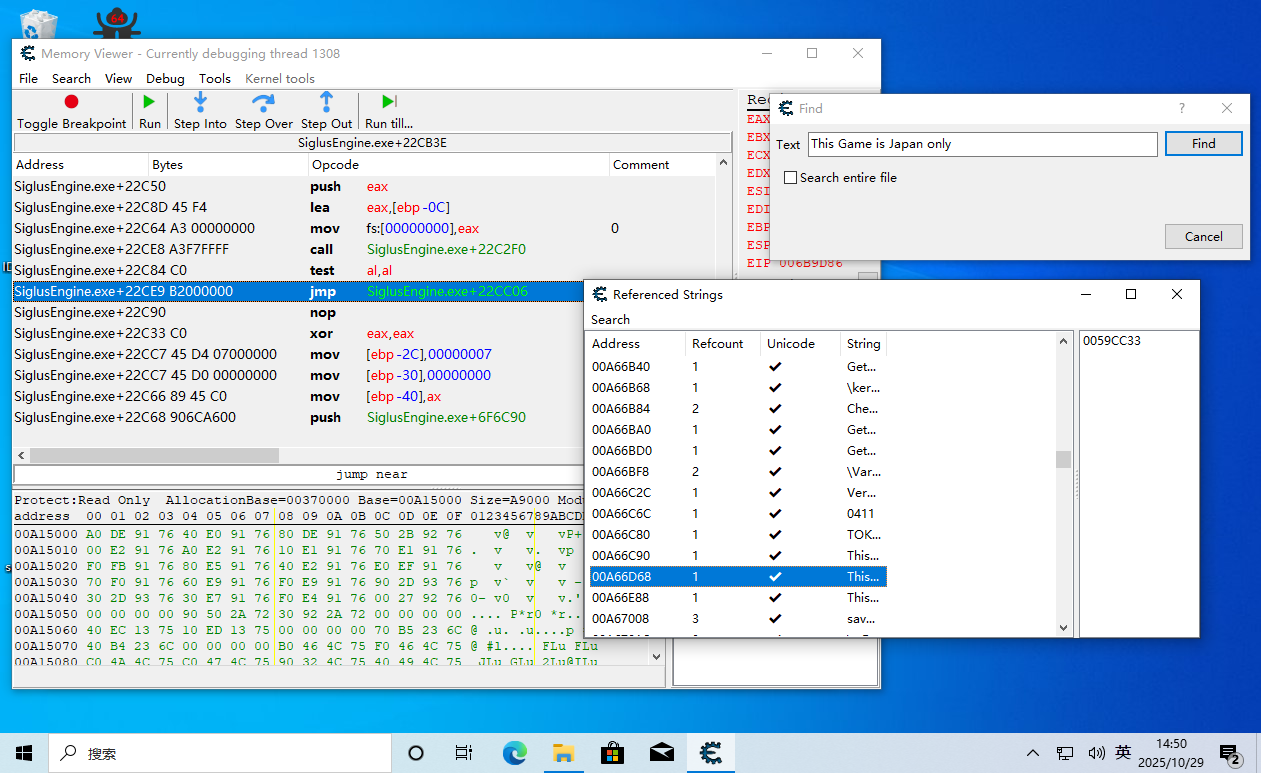 开始运行,到弹出地区错误窗口的地方,搜索字符串
