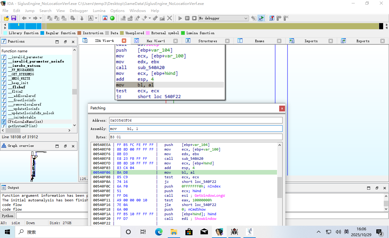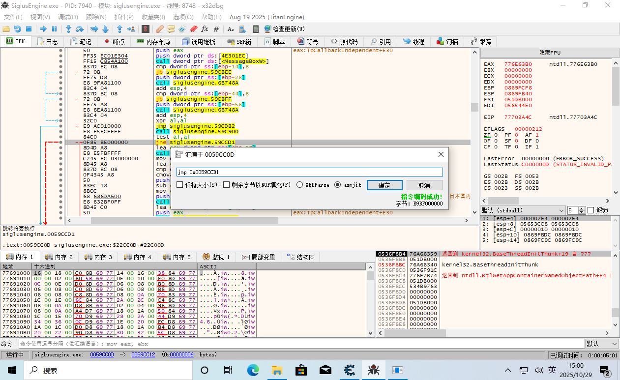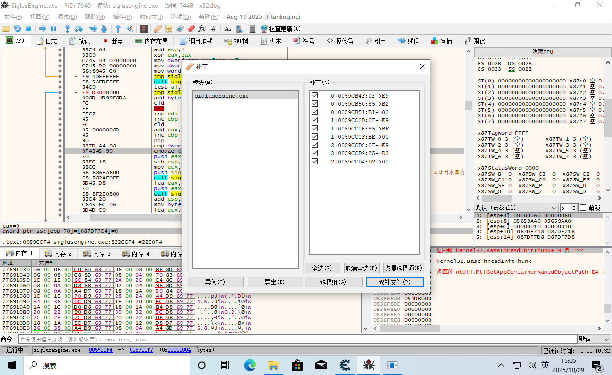但是这样的更改是一次性的,下面我们要用x32dbg来持久化更改