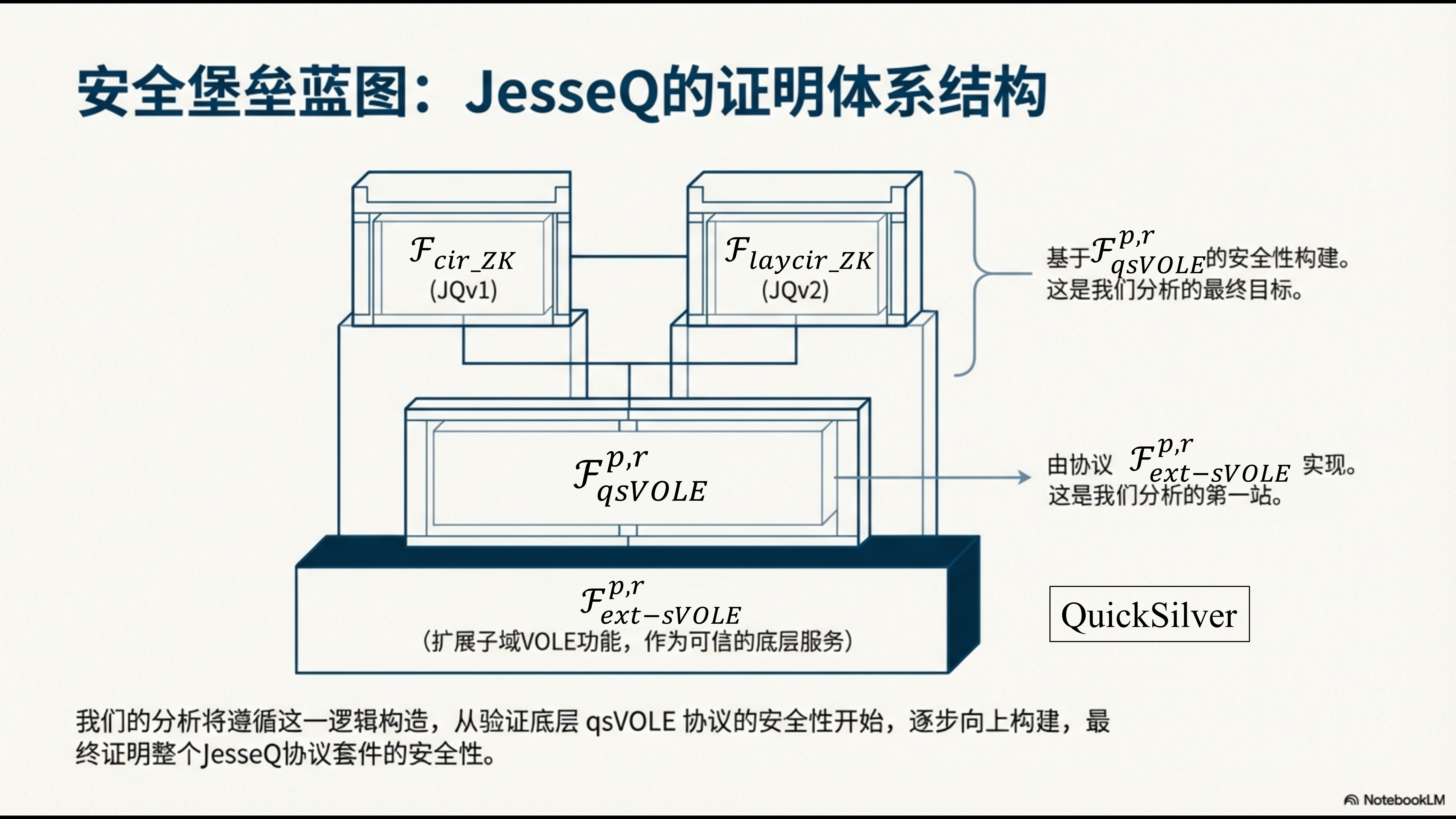 JesseQ提出了三个这个\(\mathcal{F}\)的东东,其中\(\mathcal{F}_{qsVOLE}^{p,r}\)基于QuivkSilver模型,而又是JQv1和JQv2的基石