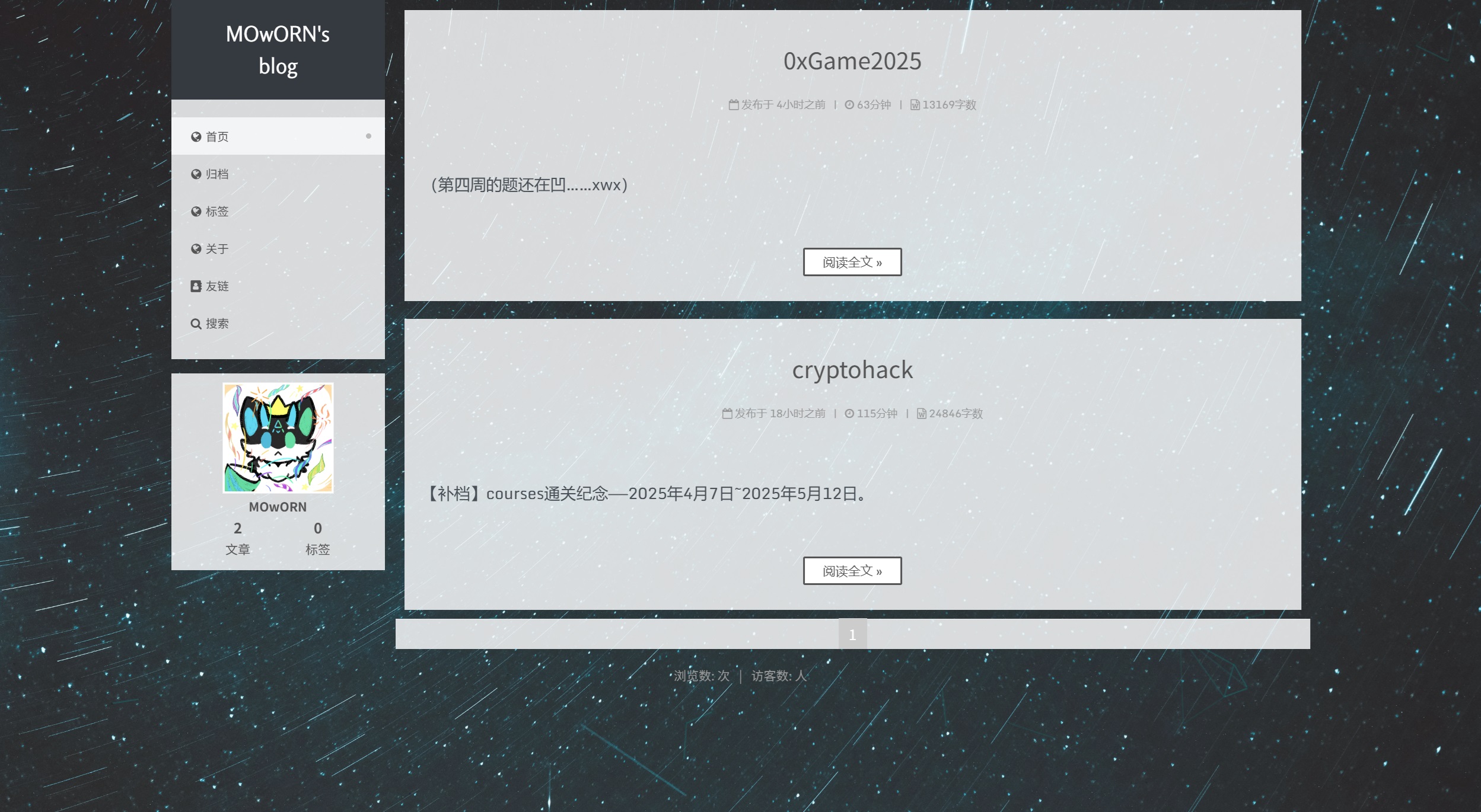 251027日志:新增RSS和背景变色.251023日志:新增category功能,和tag有重合,后续分开.251013日志:支持匿名评论;图片为随机小熊猫表情包;远古文章LaTeX玄学异常